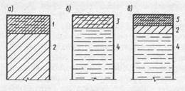 Строение верхних зон земной коры зависит от географо-климатических условий района. На большей части европейской территории России (исключая северо-восточную оконечность Кольского нолуострова), в Западной Сибири и Средней Азии толща грунта и зимнее время промерзает на некоторую глубину, а летом оттаивает. Ниже расположен постоянно талый грунт. Попеременно замерзающий и оттаивающий слой грунта называют деятельным слоем (рис. 4, а). На Севере и в Восточной Сибири ниже деятельною слоя располагается толща вечномерзлого грунта. В этом случае поверхностный слой грунта, промерзающий зимой и оттаивающий летом, называют слоем сезонного оттаивания, если он зимой сливается с вечномерзлым грунтом (рис. 4, б), и сезонного промерзания, если между ним и кровлей вечной мерзлоты находится слой талого грунта (рис. 4, в).