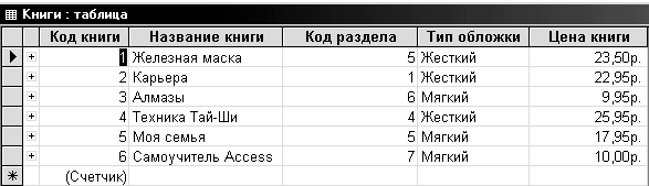 Таблица КНИГИ