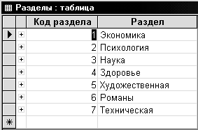 Таблица РАЗДЕЛЫ