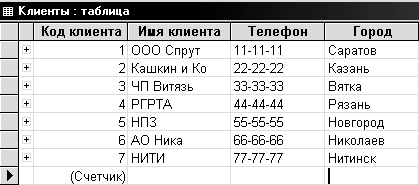 Таблица КЛИЕНТЫ