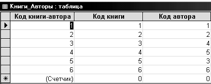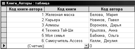 Таблица КНИГИ_АВТОРЫ