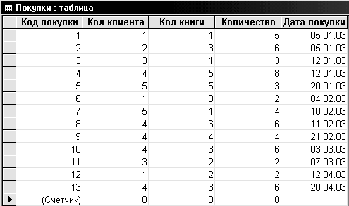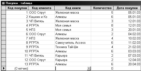 Рис. 2. Форма Покупки в режиме таблицы
