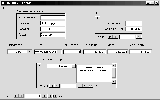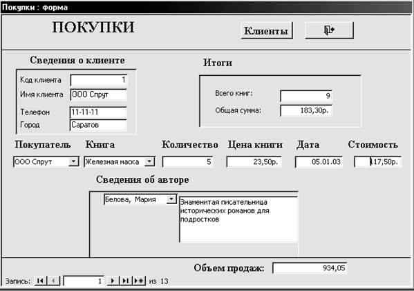 Рис.3. Форма Покупки после настройки