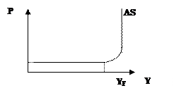 Промежуточный отрезок кривой AS характеризует экономику, близкую к условиям полной занятости ресурсов.
