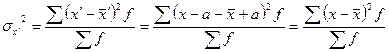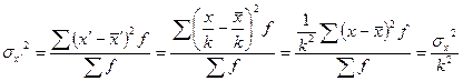 3. Если все варианты значений признака уменьшить в одно и то же число раз (k раз), то дисперсия уменьшится в k2 раз.
