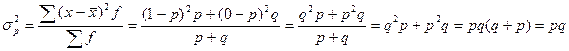 Дисперсия же альтернативного признака будет равна: