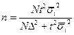 При собственно–случайном повторном отборе численность выборки определяется по формуле