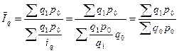 При изучении данных может быть поставлена иная задача: определить соотношение уровней цен на продукцию, реализованную в городе М по сравнению с городом К. При этом для определения общего индекса цен в качестве весов-соизмерителей индексируемых величин используются данные о количестве реализации товаров в городе М (