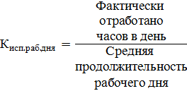 Коэффициенты использования максимально возможного фонда рабочего времени, продолжительности рабочего периода и дня.