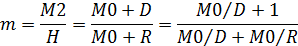 Если известен показатель денежной базы, то можно рассчитать массу денег в обращении: