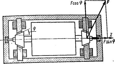 при вершине. Центрирование в радиальных направлениях осуществляется составляющей электромагнитных сил притяжения Fcos