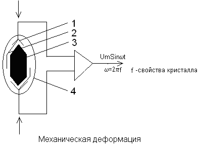 Наоборот, если к тем же поверхностям кристалла приложить переменное электрическое напряжение, то кристалл будет деформироваться в соответствии с изменением напряжения.
