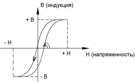 Иногда петля гистерезиса ферромагнетика близка к прямоугольной. Она характеризует энергию, затраченную на перемагничивание.