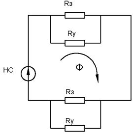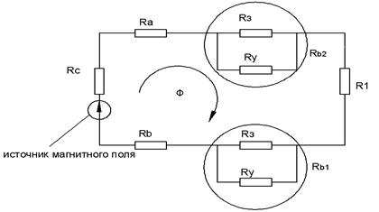 Эквивалентная магнитная цепь прибора в следующем приближении: