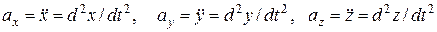 – компоненты ускорения, они равны вторым производным соответствующих координат по времени.