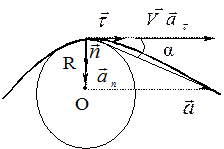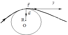 Каждой точке кривой можно сопоставить окружность, которая сливается с траекторией на бесконечно малом ее участке. Радиус этой окружности R., (см. рис. 3), характеризует кривизну линии в рассматриваемой точке и называется радиусом кривизны.