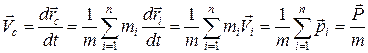 Отметим, что в однородном поле сил тяжести центр масс совпадает с центром тяжести системы. Скорость центра масс