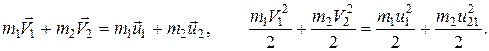 Решая совместно эти два уравнения, найдем скорости шаров после абсолютно упругого удара: