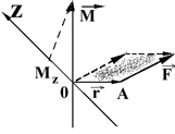 Моментом силы механической системы относительно оси называется проекция на эту ось вектора момента силы системы относительно любой точки, выбранной на рассматриваемой оси (рис. 2). Соответственно, моментом импульса относительно оси называется проекция на эту ось вектора момента импульса относительно любой точки на данной оси.