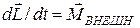 , действуют вдоль одной и той же прямой. Момент таких двух сил, а значит и моменты всех внутренних сил равны нулю. В результате опять получается уравнение моментов типа (5) только для системы материальных точек, в котором