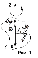 Такое твердое тело имеет одну степень свободы и его положение в пространстве полностью определяется значением угла поворота вокруг оси вращения из некоторого, условно выбранного, начального положения этого тела. Мерой перемещения тела за малый промежуток времени dt полагают вектор