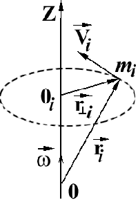– радиус вектор, проведенный из некоторой точки О на оси вращения ОZ до произвольной материальной точки тела, то скорость этой точки определяется соотношением