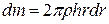 Мысленно разделим цилиндр высоты h и радиуса R на концентрические слои толщиной dr. Если плотность материала цилиндра