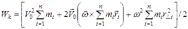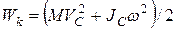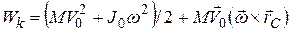 скоростью центра масс V c и вращательное с угловой скоростью w вокруг оси, проходящей через центр масс тела, то кинетическая энергия распадается на два независимых слагаемых, одно из которых определяется только скоростью центра масс V c, а другое – угловой скоростью w.