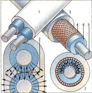 Коаксиальная цепь представляет собой два цилиндра с совмещенной осью, причем сплошной внутренний цилиндрический проводник расположен по оси внутри полого цилиндра.