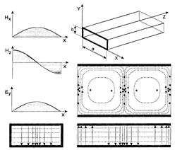 В волноводе электромагнитное поле полностью экранируется и потери на излучение должны отсутствовать. Диэлектрические потери в волноводе также очень малы. Потери в металле у волновода существенно меньше, чем у симметричной или коаксиальной цепи. У коаксиального кабеля, например, большая часть потерь (80%) вызывается внутренним проводом, так как периметр его сечения намного меньше, чем наружного. Таким образом, минимальные потери у волновода, затем у коаксиального кабеля, и, наконец, у симметричного максимальные. Достоинством волновода является также то, что по нему можно пропускать большую мощность, чем по коаксиальному кабелю.