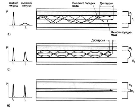 Ø многомодовое волокно с плавным изменением показателя преломления (рис. 6,б);