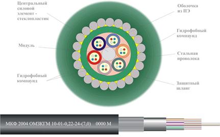 На Рис. 7 приведен пример конструкции оптического кабеля.
