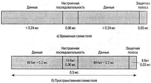 Получившаяся в результате структура кадра показана на рис. 3, б. По каналу со скоростью передачи 242 Кбит/с передается 121 бит за 0,5 мс.