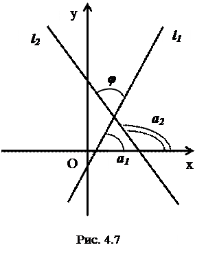 4.3.8. Вычисление угла между двумя прямыми. Условия параллельности и перпендикулярности двух прямых