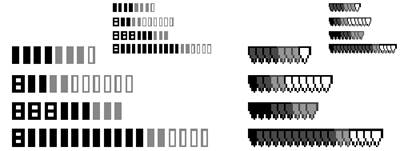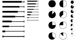 Рис. 4. Индикатор оставшейся доли. Левый вариант плох тем, что занимает довольно много места, правый меньше, зато его легче прочесть обратным образом, т.е. неправильно. С другой стороны, с правым вариантом легче индицировать критический случай, т.е. ситуацию, при которой товар вот-вот испортится: надо лишь покрасить его в красный цвет.