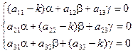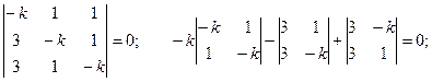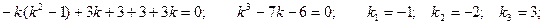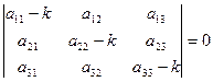 В результате вычисления определителя получаем уравнение третьей степени относительно k. Это уравнение называется характеристическим уравнением и имеет три корня k1, k2, k3. Каждому из этих корней соответствует ненулевое решение системы (2):