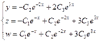 Эта система дифференциальных уравнений не относится к рассмотренному выше типу, т.к. не является однородным (в уравнение входит независимая переменная х).