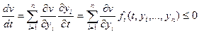 2) Полная производная функции v вдоль фазовой траектории (т.е. вдоль решения yi(t) системы (1)) удовлетворяет условию: