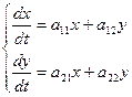 Рассмотрим систему двух линейных дифференциальных уравнений с постоянными коэффициентами