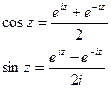 Функции ez, cosz, sinz связаны между собой формулой Эйлера (см. Уравнение Эйлера.) Эта формула может быть очень легко получена сложением соотвествующих рядов.