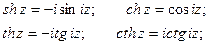 Гиперболические функции sh z и ch z имеют период 2pi, а функции th z и cth z – период pi.