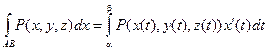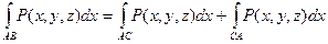 Определение. Если при стремлении к нулю шага разбиения кривой АВ интегральные суммы имеют конечный предел, то этот предел называется криволинейным интегралом по переменной х от функции P(x, y, z) по кривой АВ в направлении от А к В.