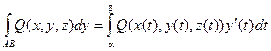 Вычисление криволинейных интегралов второго рода производится путем преобразования их к определенным интегралам по формулам: