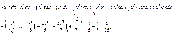 Представим замкнутый контур L как сумму двух дуг L1 = x2 и