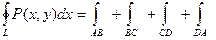 Если замкнутый контур имеет вид, показанный на рисунке, то криволинейный интеграл по контуру L можно записать в виде: