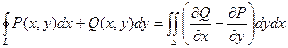 Формула Остроградского – Грина устанавливает связь между криволинейным интегралом и двойным интегралом, т.е. дает выражение интеграла по замкнутому контуру через двойной интеграл по области, ограниченной этим контуром.