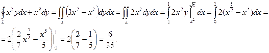Пример. Решим пример, рассмотренный выше, воспользовавшись формулой Остроградского – Грина.