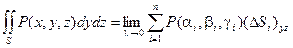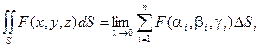 Рассмотрим произведение значения некоторой функции F в произвольной точке с координатами (a, b, g) на площадь частичного участка DSi, содержащего эту точку.
