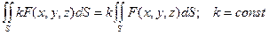 Поверхностные интегралы первого рода обладают следующими свойствами:
