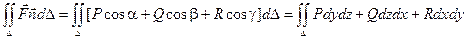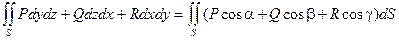 В этой формуле cosa, cosb, cosg - направляющие косинусы нормали к поверхности S в выбранную сторону поверхности.